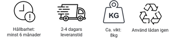 - Vi skickar alla lådor i blanka kartonger (så det förblir en överraskning)